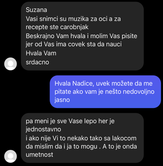 Uvek me možeš kontaktirati i odgovoriću na sva tvoja pitanja. Iako se u grupi polaznika držimo recepata za sourdough bread, sigurno neću odoleti da te podržim i na osvajanju drugih gastronomskih trijumfa!